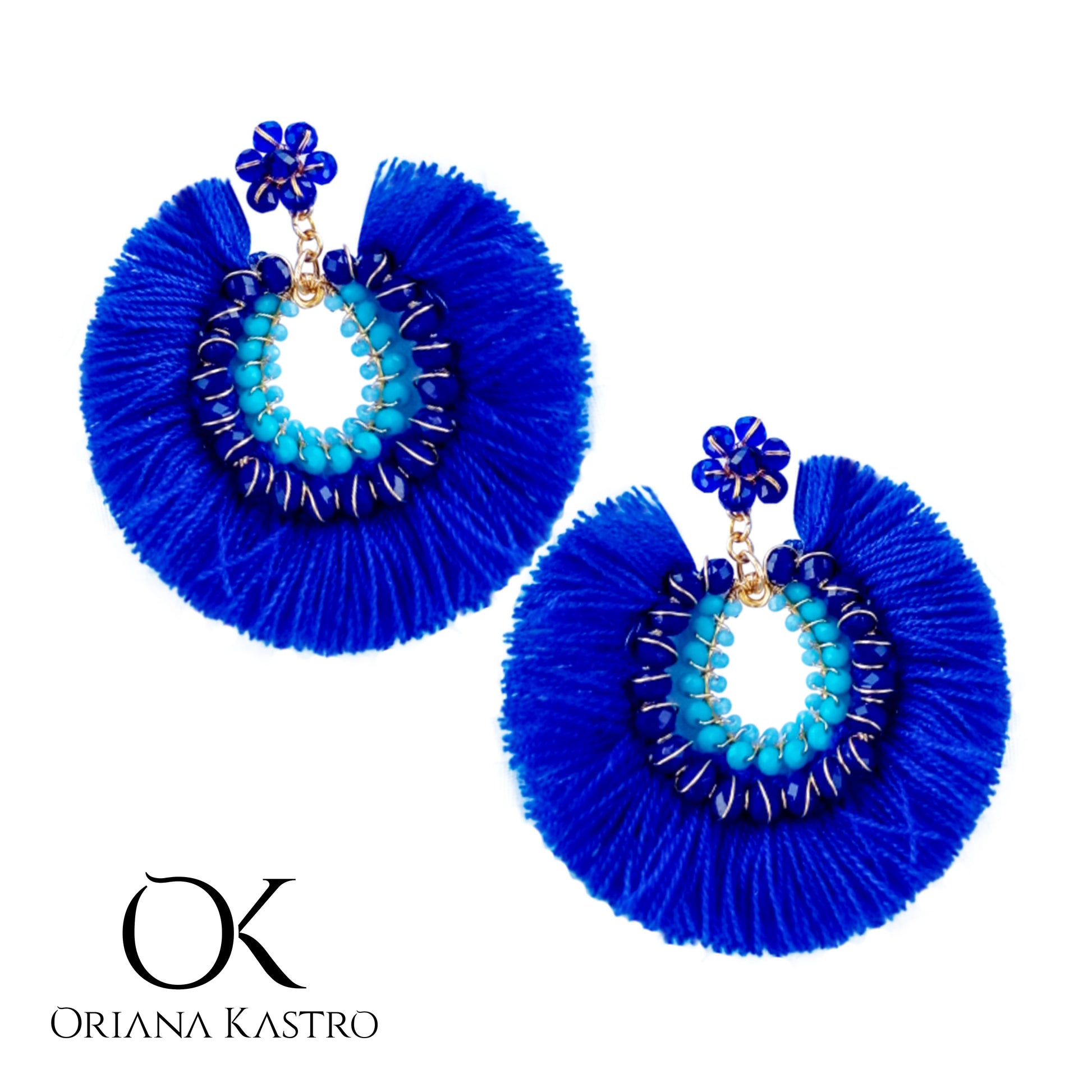 The Carmen are earrings embroidered in plated wire, with Muranos and hanging tassels around the entire circumference, they have a plated and hypoallergenic pin.