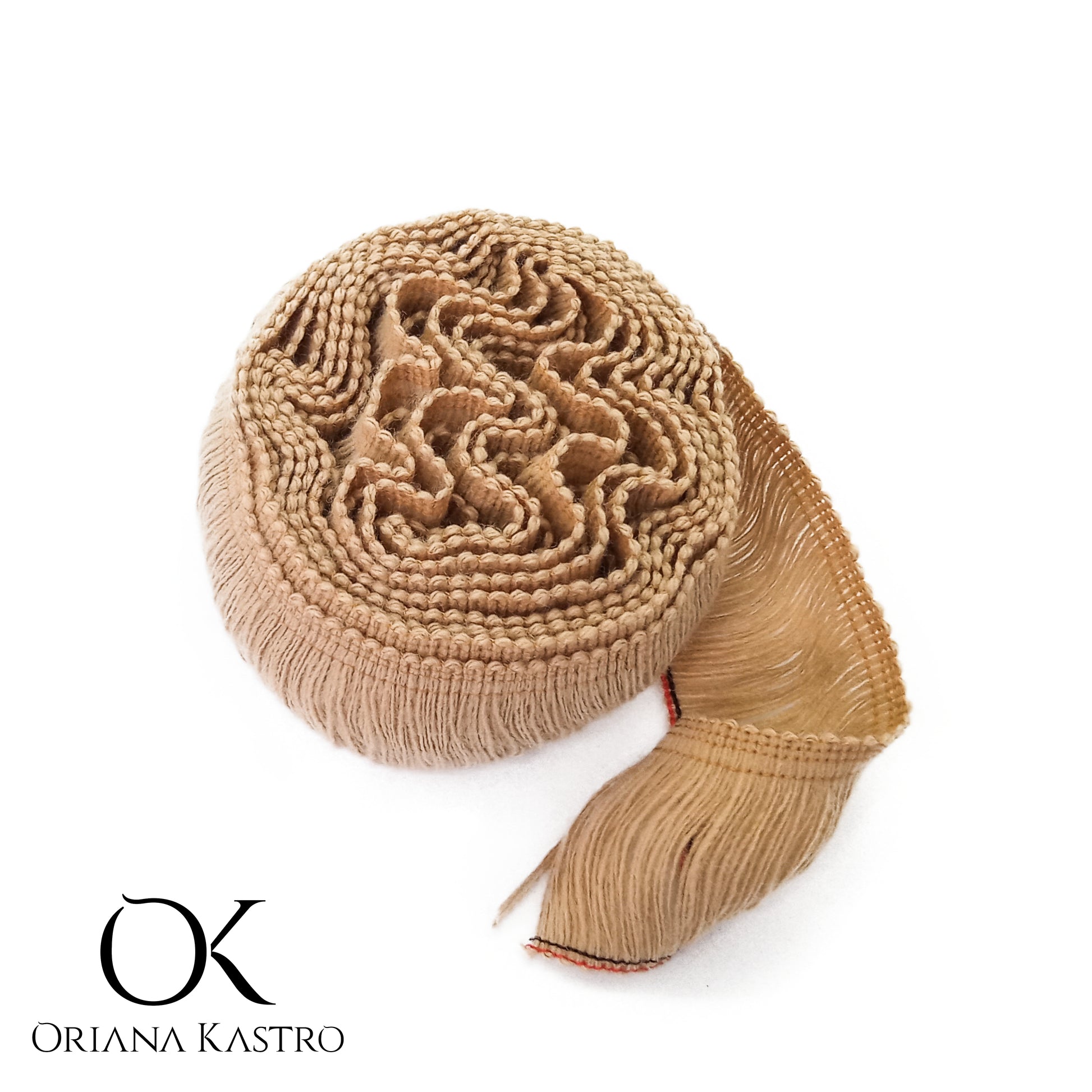 La cinta de flecos se usa para hacer borlas de diferentes tamaños, también se usa para decorar aretes y collares en forma circular, generalmente se usan dos o tres capas para cubrir todos los espacios de los aretes.